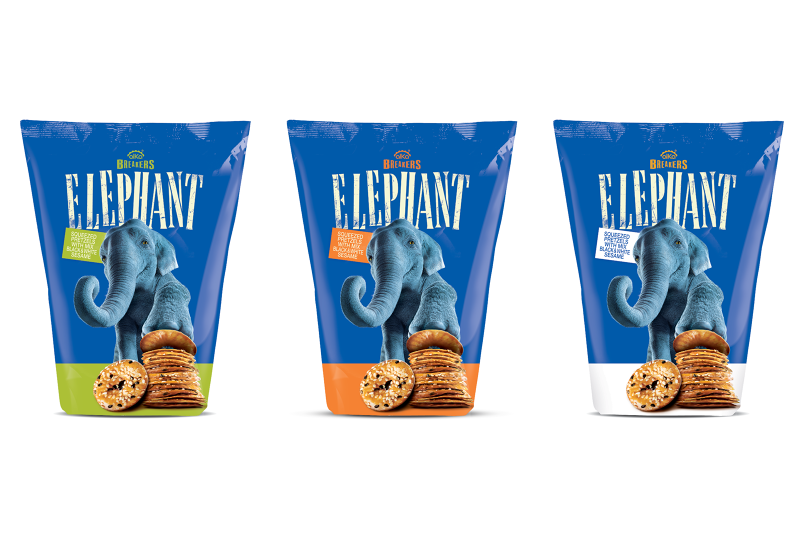 The new Elephant ‘squeezed’ pretzel lines are available from Innovative Bites with a recommended retail price of £0.29 (40g), £0.79p (90g) and £1.50 (180g).