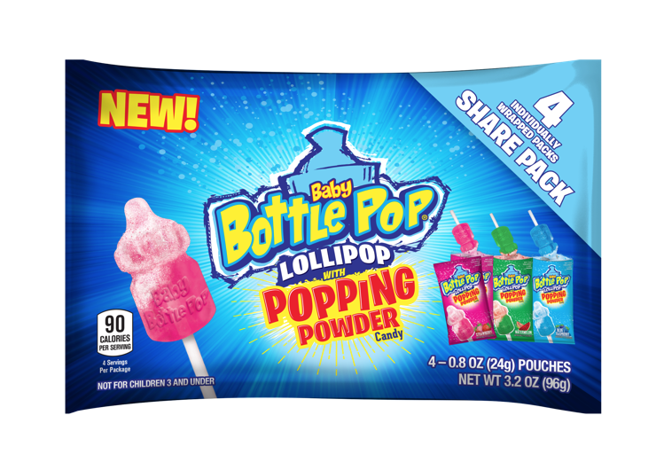 Bazooka Candy Brands, a division of The Topps Company, has launched Baby Bottle Pop Lollipop with Popping Powder.