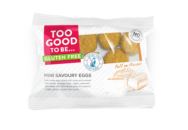 Gluten-free pastry brand Too Good To Be Gluten Free has launched a new range of snack packs which includes cocktail sausages and mini Scotch eggs to target the growing snack market.