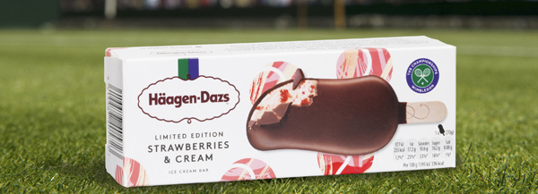 Häagen-Dazs has launched a strawberries & cream limited edition ice cream bar in honour of its partnership with Wimbledon.