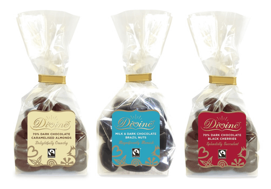 Fairtrade company Divine Chocolate will be introducing a range of new products for Christmas: Divine Chocolate Black Cherries, Brazil Nuts & Caramelised Almonds gift bags.