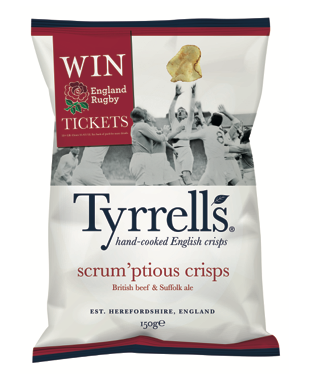 British hand-cooked crisp brand Tyrrells has added to its range with the launch of the new Scrum’ptious British beef & Suffolk ale crisps – just in time to mark the start of the NatWest 6 Nations Championship.