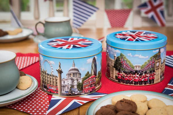 Launched exclusively via the home shopping channel, QVC, the tin itself portrays an intricate, embossed representation of London, including many of the city’s most famous landmarks. When you open the lid, it plays either the National Anthem or Rule Britannia.