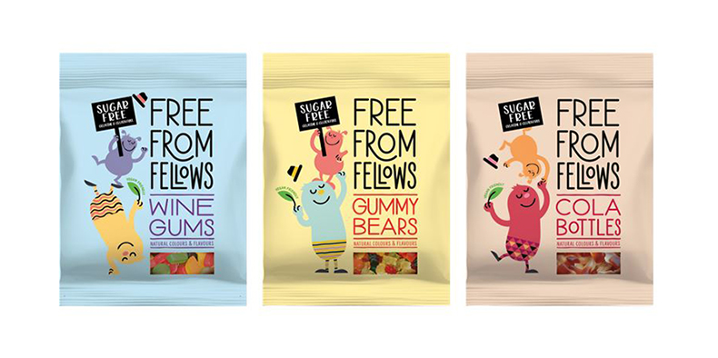 Sugar free, gelatine free, gluten free confectionery brand Free From Fellows has undergone a colourful full brand design overhaul ready to hit the shelves this coming winter.