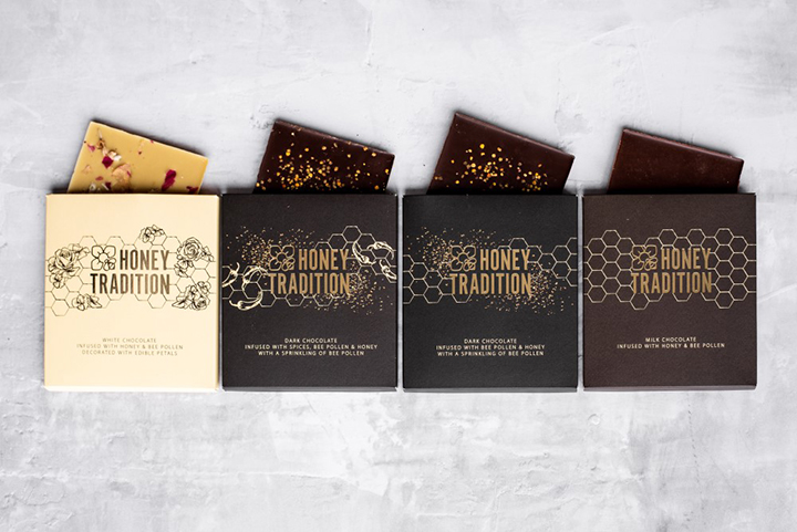 Honey Tradition, a Milton Keynes (UK) based boutique honey brand owned by Sarah Reid and Marek Vargapal, has announced a new range of luxury chocolate bars to complement its existing award-winning raw honey and bee pollen products.