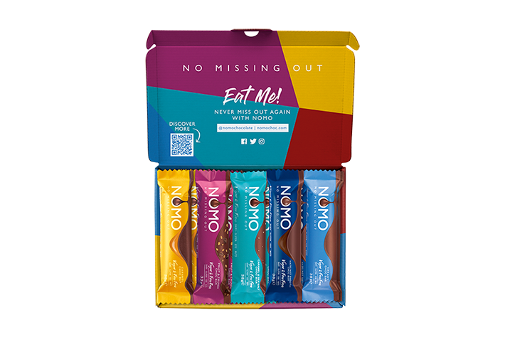 To make the transition a little easier and a littletastier, according to the company,NOMO is launchingaNOMO Mixed Boxexclusivelyavailableatits online store, nomochoc.com/pages/nomo-mixed-box. The box of goodies will offer ten flavours available in mainstream confectionery, so it is easier to make direct swaps (details below).
