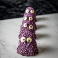 The host of these spooky delights, unveiled by authentic Danish bakers Ole & Steen, includes the Monster Whip £3.95 – a marzipan base topped with blackcurrant marshmallow, dipped in dark chocolate and purple coconut and decorated with candy eyes.