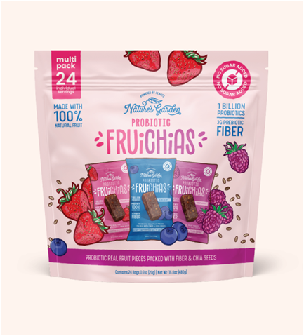 Cibo Vita, manufacturer of Nature’s Garden brand since 2011, announces the launch of Probiotic FruiChias, snacks made with real fruit puree and chia seeds. FruiChias come in strawberry, blueberry, and raspberry flavours.