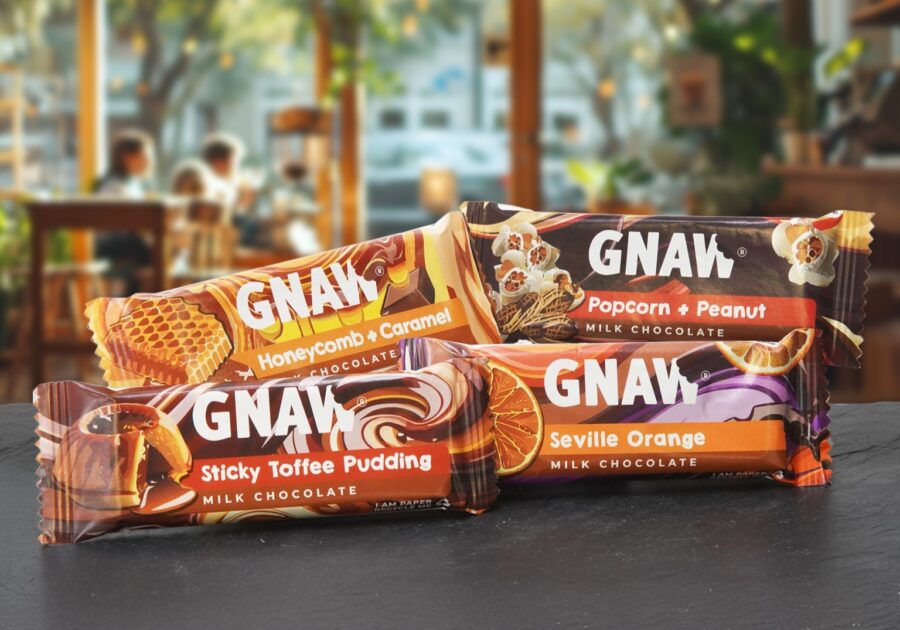 From 25 May, Gnaw will launch a new range of four 35g impulse chocolate bars, available in fully recyclable wrappers. The new selection includes the following milk chocolate flavours: Popcorn & Peanut, Honeycomb & Caramel, Sticky Toffee Pudding, and Seville Orange.