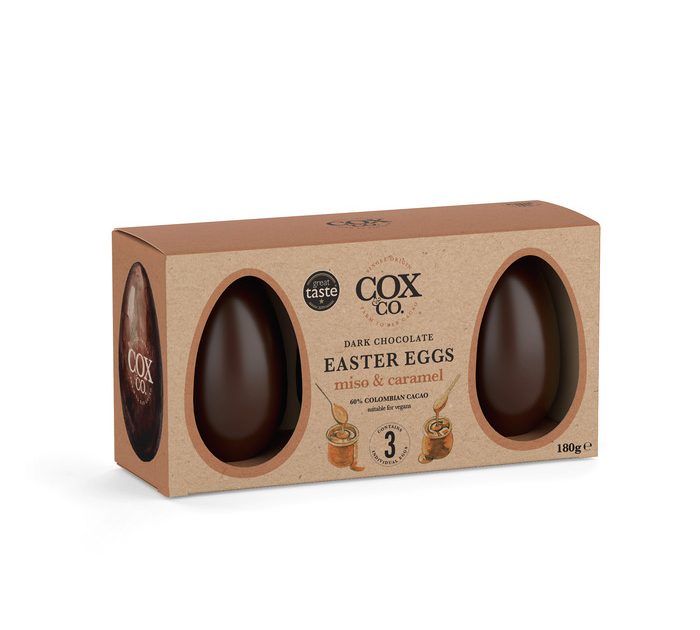 Cox&Co’s Aleppo Chilli & Cherry Easter Egg (155g RRP £14.00), Miso & Caramel Triple Pack (3 x 60g, RRP £18.00) and Bee Pollen & Honey Triple Pack (3 x 60g, RRP £18.00) are available at selected Waitrose stores, Amazon and online.