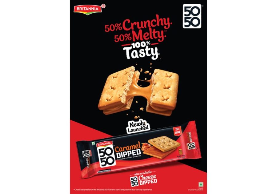 Britannia 5050 Caramel Dipped and Cheeze Dipped Crunchy Layered Sandwich is currently available across select cities at leading retail outlets and Q-commerce platforms.