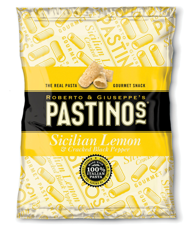 Pastinos is made from 100% pasta, fried and seasoned with a range of Italian flavours that are new to the premium snack category: Originale, Sicilian Lemon and Black Pepper, Tomato and Basil, Arrabbiata and Chianti and Olive.