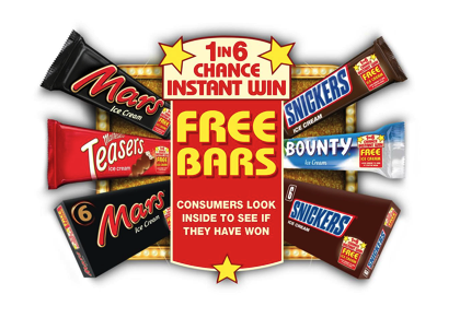 The instant win promotion will include the Mars, Snickers, Bounty and Maltesers Singles, as well as the Mars and Snickers 6 packs. The promotion will run from 1 March – 31 October 2015 and assures one in six purchasers a win in the form of another ice cream bar from the Mars portfolio.