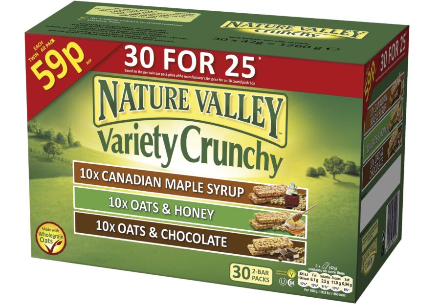 Included in the mixed cases are twin packs of three of the best selling Nature Valley single bars including: Canadian Maple Syrup, Oats and honey and Oats and Chocolate. Cases are available in 59p PMP.