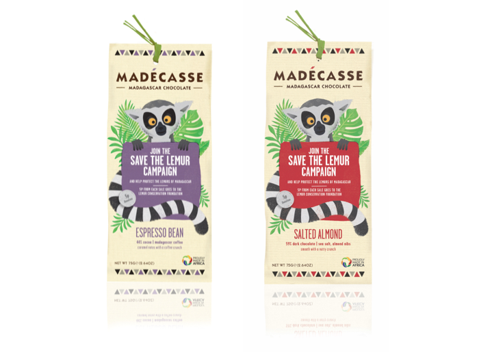 Five pence from the sale of each limited edition bar is being donated to the Lemur Conservation Foundation, whose aim is to preserve and protect lemurs, which are only found in Madagascar and are one of the most endangered mammals in the world.